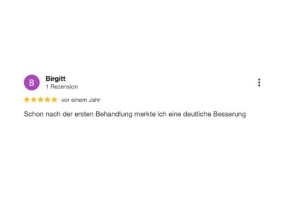 Deutliche Schmerzreduktion bei 9 von 10 Patienten bereits im Ergebnis der ertsen Behandlung.