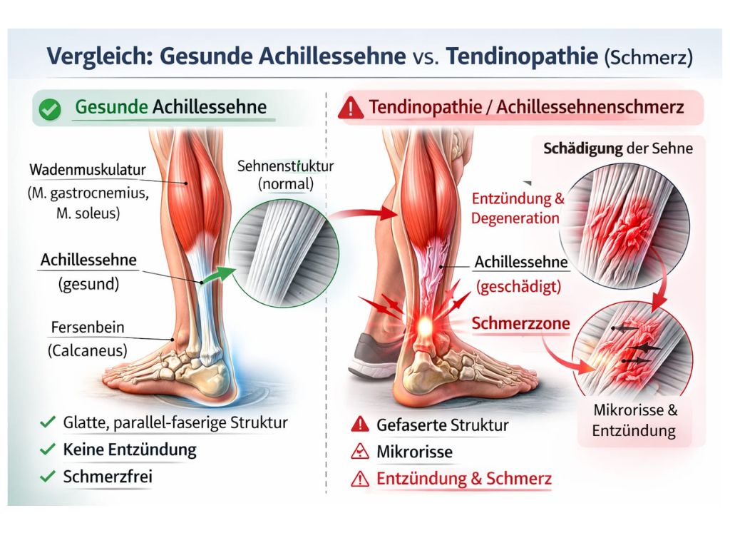 Die Achillessehne ist die stärkste Sehne unseres Körpers. Sie trägt bei jedem Schritt das Vielfache unseres Körpergewichts. Doch was, wenn sie plötzlich brennt, sticht oder sich morgens wie „eingerostet“ anfühlt? Betroffene kommen in meine Praxis und haben bereits eine lange Odyssee aus Einlagen, Schmerzmitteln oder Sportpausen hinter sich – oft ohne dauerhaften Erfolg.